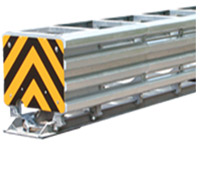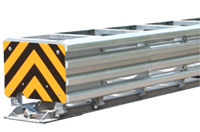 The Smart Cushion® crash attenuator is a revolutionary, speed-dependent product that varies stopping resistance during an impact. The Smart Cushion® crash attenuator allows lighter and slower-moving vehicles to have longer ride-down distances and lower ride-down g-forces. Unlike fixed-resistance attenuators, the Smart Cushion® attenuator does not reach maximum stopping resistance unless a vehicle is traveling at the maximum design speed.